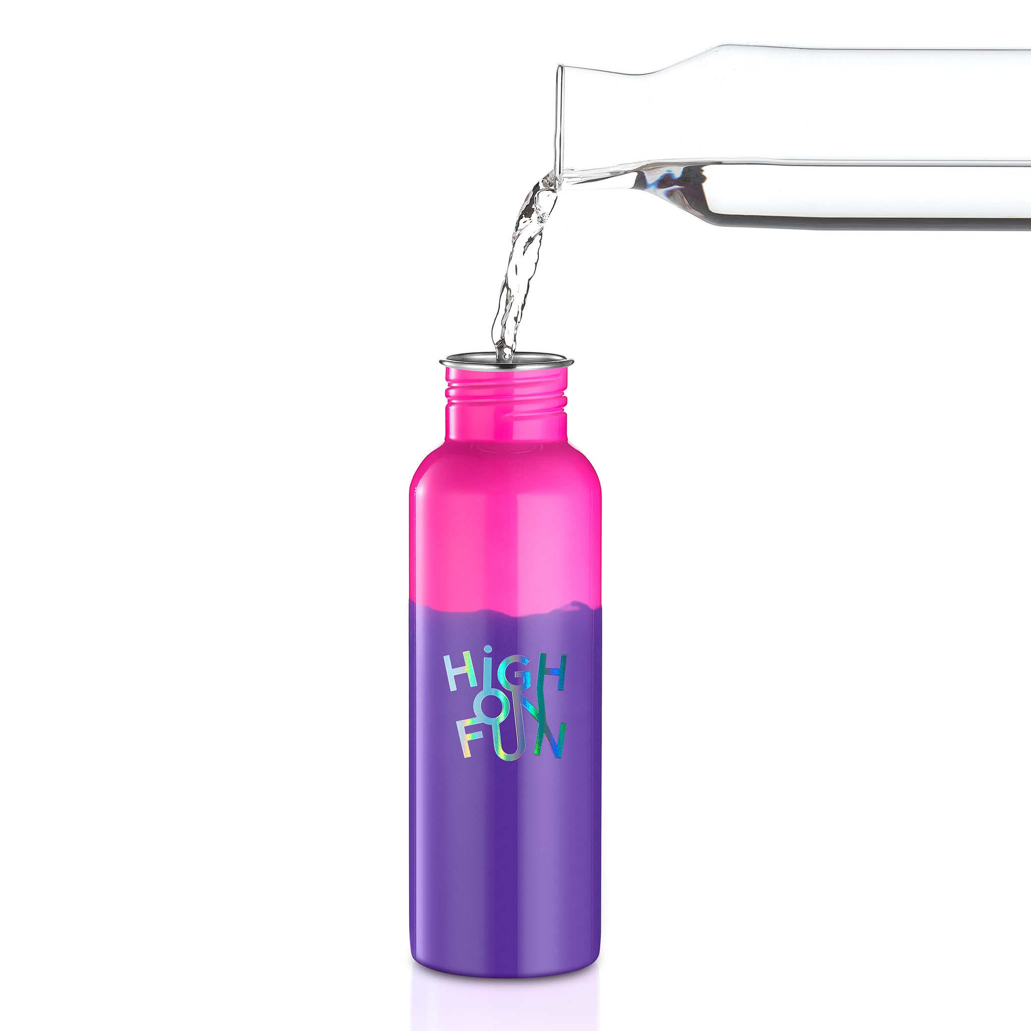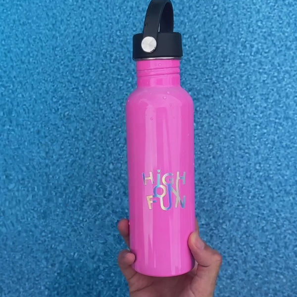 Unsere Color Splash Flaschen reagieren auf Kälte. Sobald du ein Getränk unter 20˚C / 68˚F einfüllst, verwandelt sich das kräftige Pink in ein sattes Violett. Je kälter, desto stärker der Effekt. Erwärmt sich die Flüssigkeit, kehrt die Flasche zu ihrer ursprünglichen Farbe zurück.Funktionale Hydration mit echtem Wow-Faktor.
